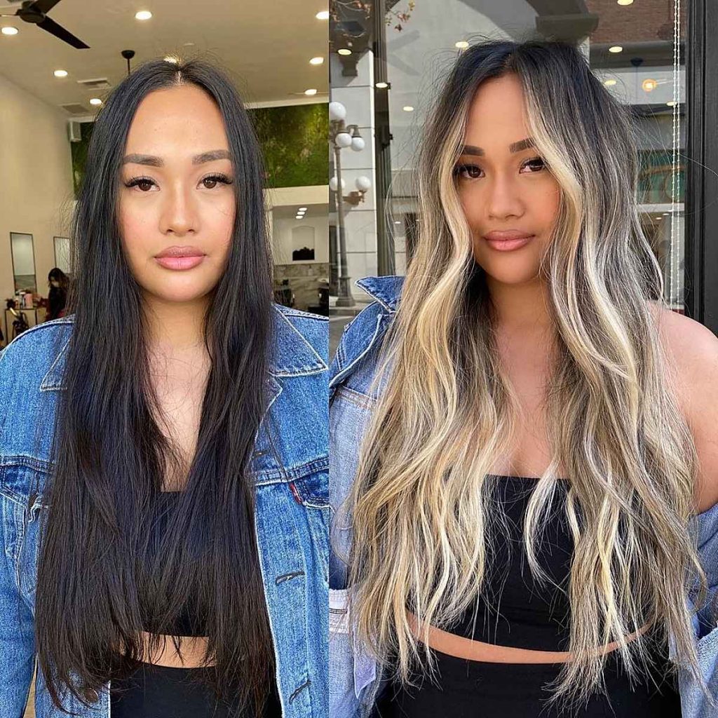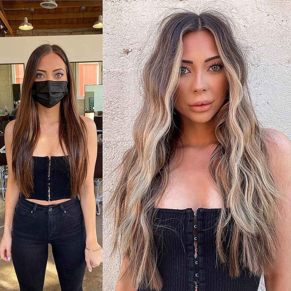 Face-framing highlights for balayage hair add extra brightness while keeping that easy beautiful grow-out that balayage coloring provides. Add invisible layers for thick hair to ensure your light bouncy style maintains its length.
