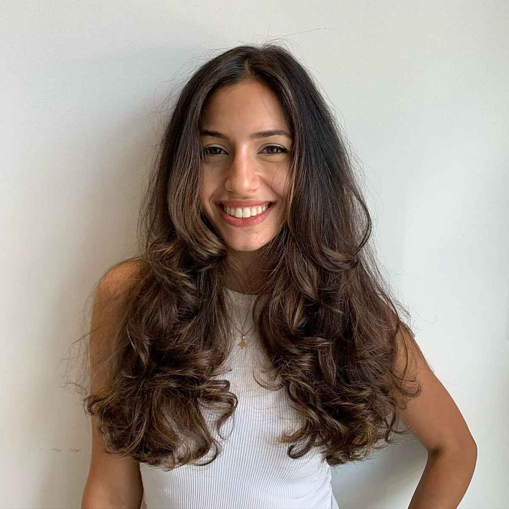 A great way to make your natural texture more tamable is with face-framing layers for long wavy hair. Without layers, a wavy hair type takes on an unflattering sharp triangle shape. Long round layers are more flattering for these hair types.