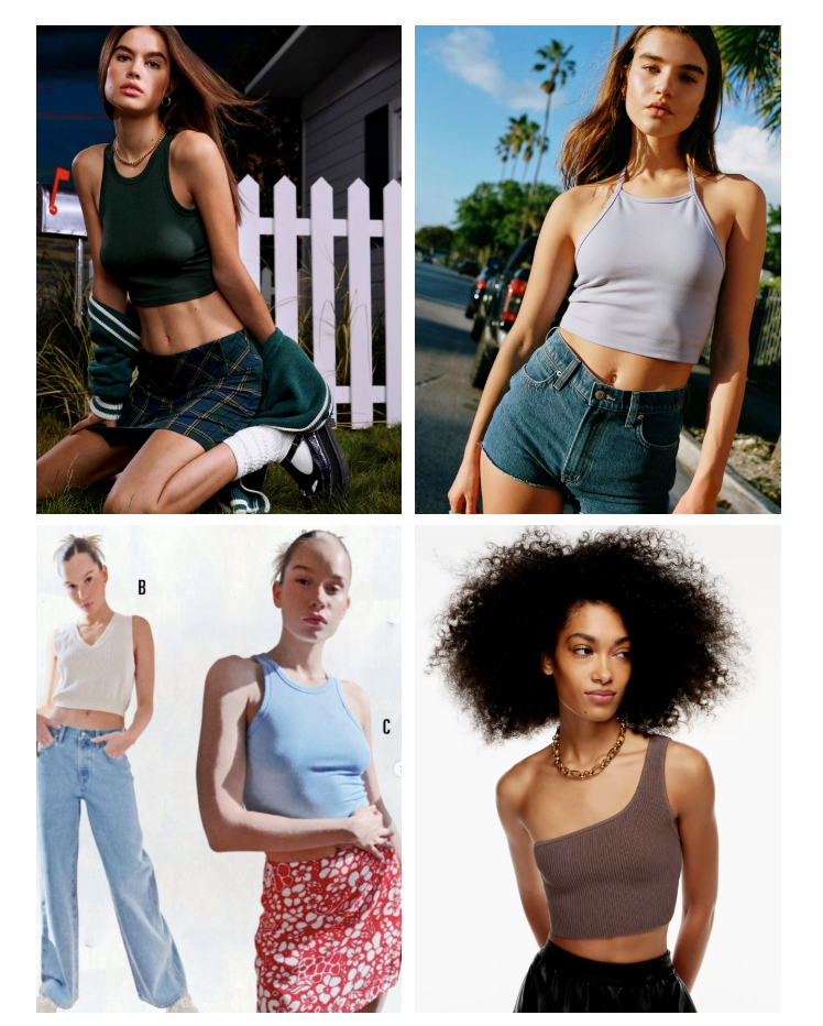 Use a short tank top as a base and wear a colourful shirt or sweatshirt over it for a casual look that looks great on your proportions!