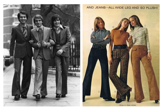 The earliest is called flared pants, is the 1970s hippies favorite style, and then gradually popularized.
