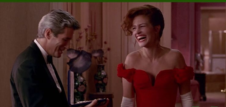 Pretty Woman is full of memorable scenes, and the one Vivian received a necklace is one of them. When Vivan tries to reach the necklace, Edward closes the box, and she starts to laugh, and it was not in the script. The director thought the original scene was boring and asked Gere to surprise Julia Roberts doing that.